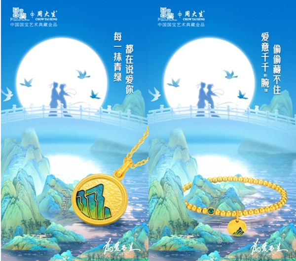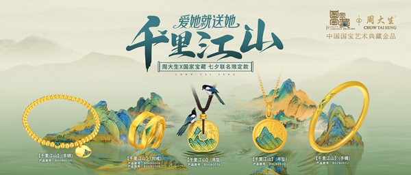浪漫七夕来临,周大生推出国家宝藏联名款,携手《千里江山图》,助力每一个心中有爱的人收获戏中所想,希望大家不负所望,勇敢的迈出这一步。不论是获得一份真情,还是更加爱护自己,都达到了周大生“为爱而生”的初心,也是对自己美好成全。