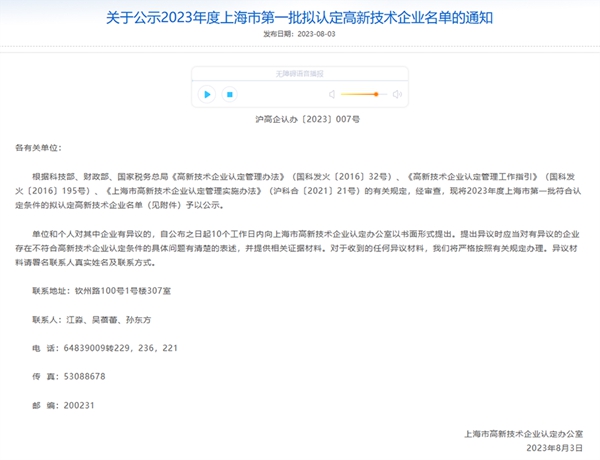 近期,经上海市高新技术企业认定办公室公示,挪亚检测认证集团有限公司(以下简称“挪亚”)通过2023年度上海市第一批高新技术企业认定。