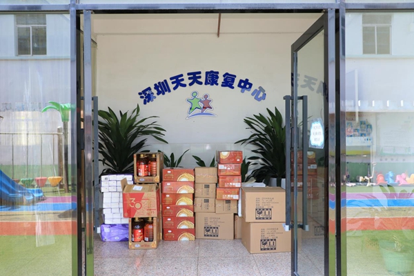 周大生天使公益基金会志愿队成员为天天康复中心的孩子们送去中秋礼品、学习用具、下午茶以及听筒训练仪等,并与他们进行各种互动。希望将最诚挚的节日祝福送给特殊儿童们,让他们能感受更多关怀和温暖,度过一个难忘且美好的节日。