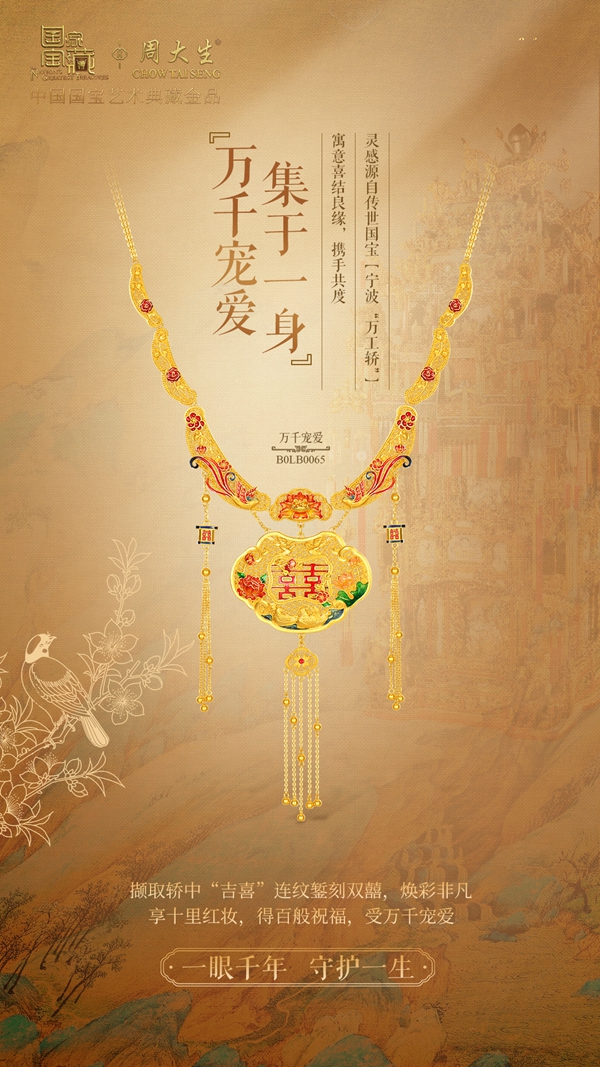 周大生乘国潮之风,扬东方婚嫁之采,幸福花嫁与国家宝藏系列婚嫁珠宝与国潮元素充分融合,外在新颖时尚,内在寓意丰满,为当代年轻人送上称心如意的婚嫁珠宝,满足他们的精神文化需求,掀起国潮婚嫁珠宝新风尚。希望周大生在未来能打造更多颇具个性的国潮珠宝,为年轻消费者送上更好的产品,推动珠宝行业的高质量发展。